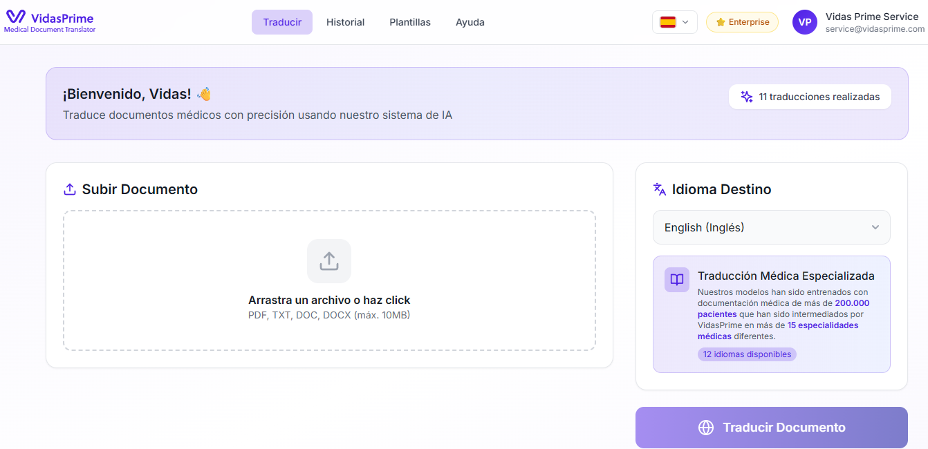 Translate clinical documents instantly with professional-grade accuracy. Our multi-agent AI processes medical reports in over 12 languages while preserving specialized terminology. An intuitive dashboard for end users and a REST API ready to integrate into your existing infrastructure.